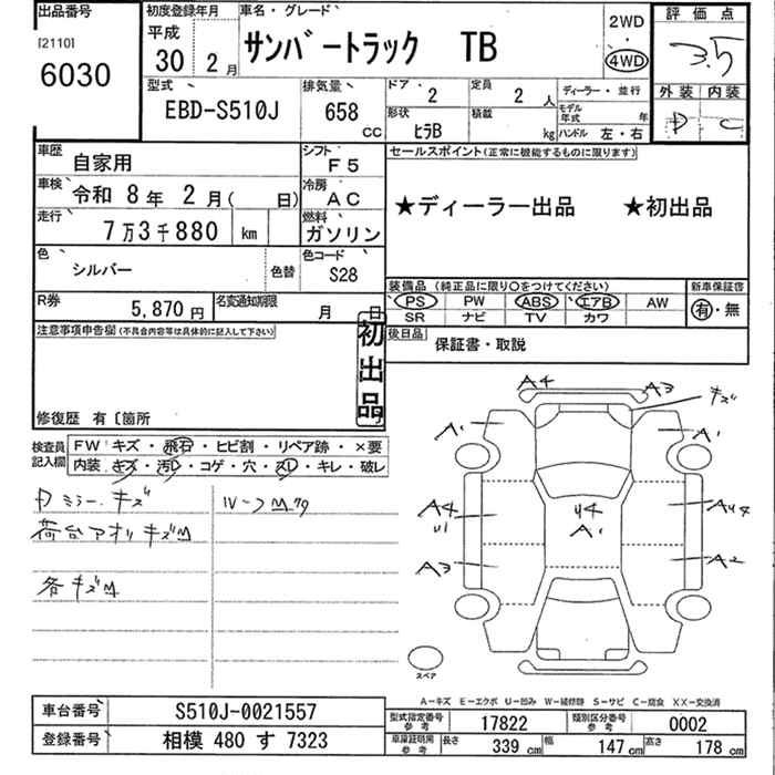 SUBARU SAMBAR 4WD TB - лот 6030