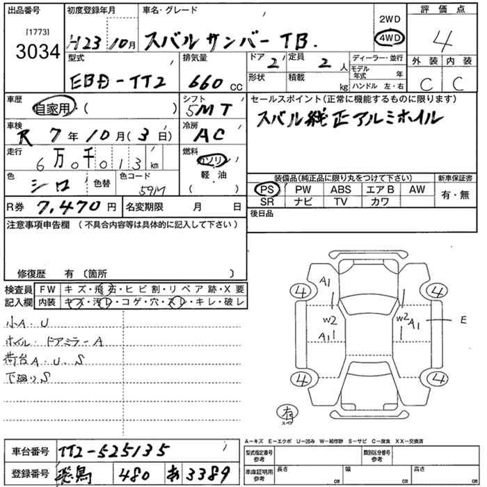 SUBARU SAMBAR 4WD TB - лот 3034