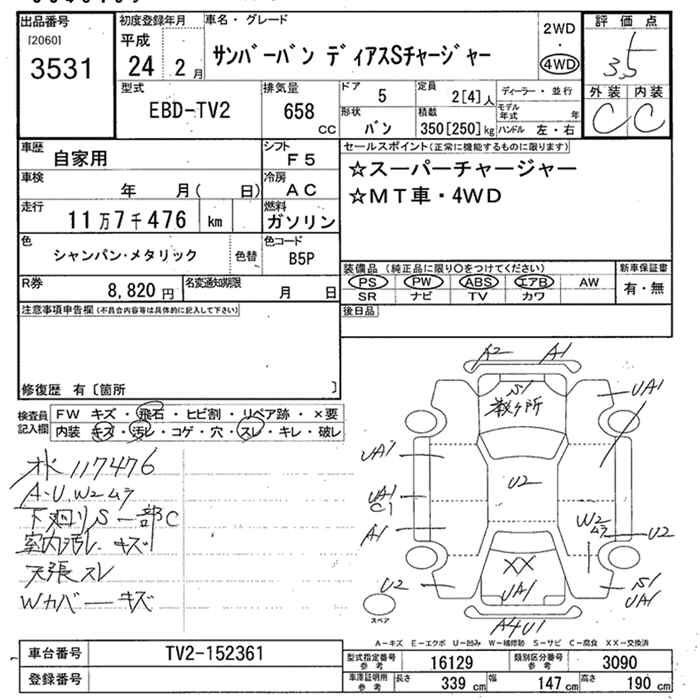 SUBARU SAMBAR DIAS - лот 3531