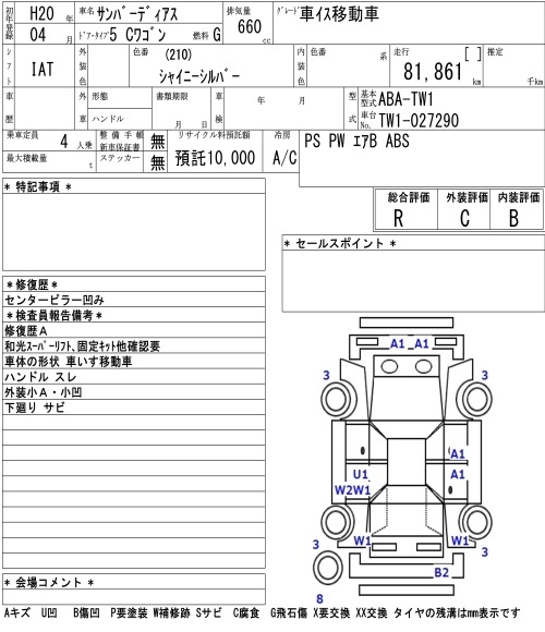 SUBARU SAMBAR DIAS - лот 4570
