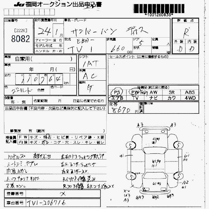 SUBARU SAMBAR DIAS - лот 8082