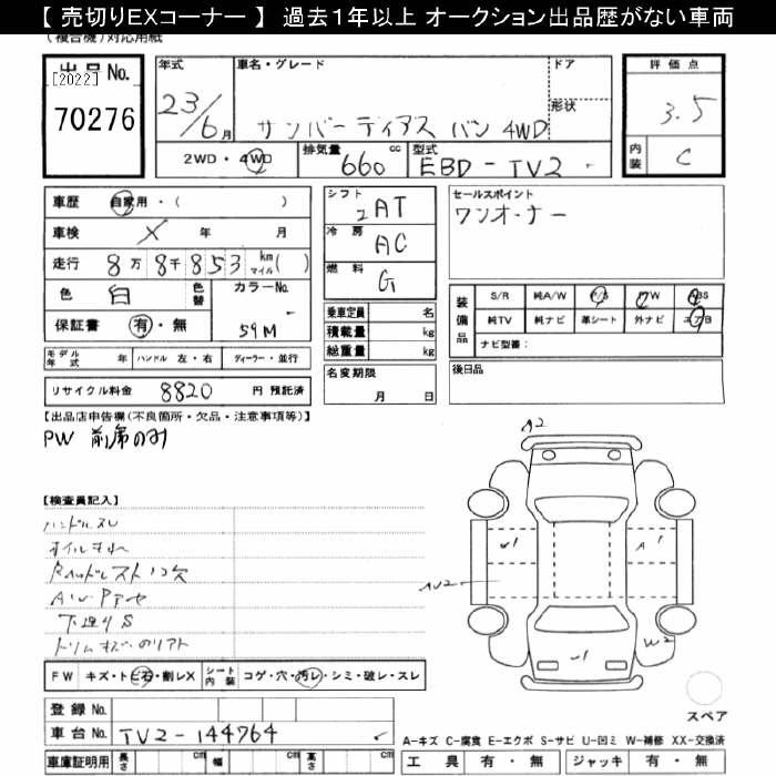 SUBARU SAMBAR DIAS - лот 70276