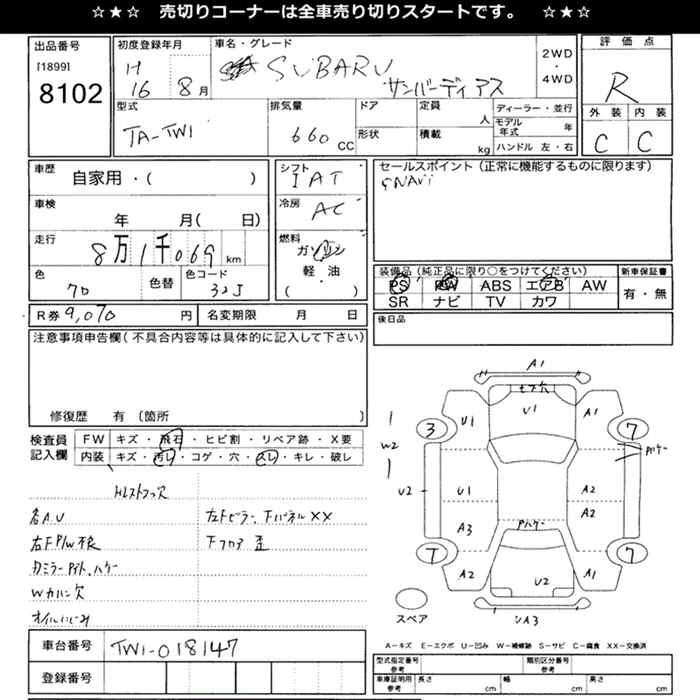 SUBARU SAMBAR DIAS - лот 8102