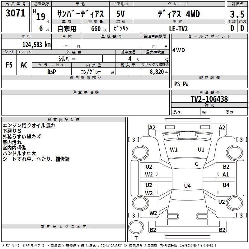SUBARU SAMBAR DIAS - лот 3071