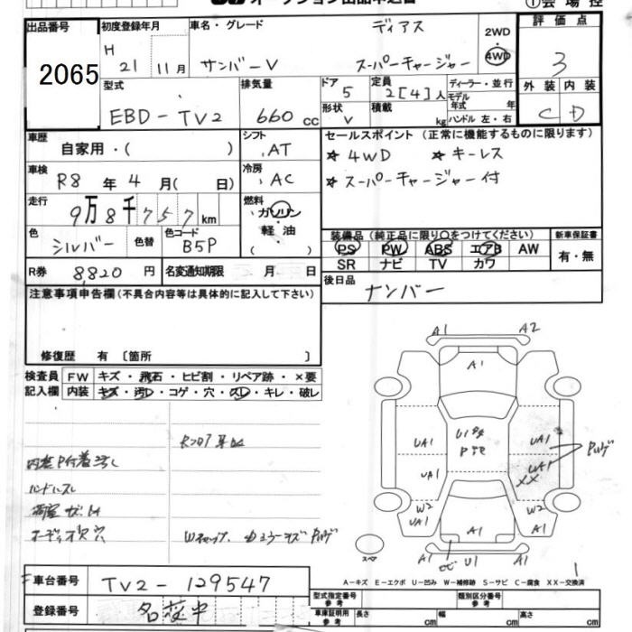 SUBARU SAMBAR DIAS - лот 2065