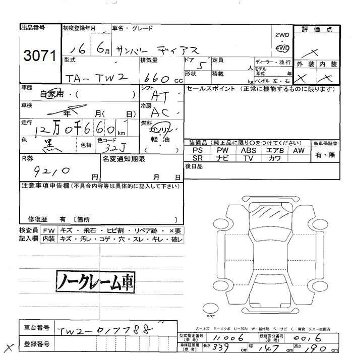 SUBARU SAMBAR DIAS - лот 3071