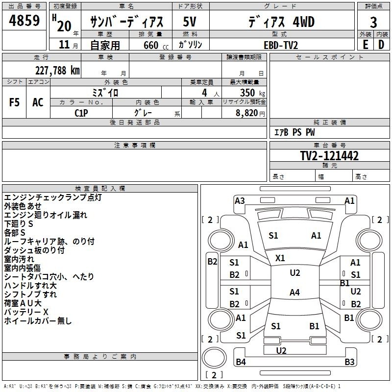 SUBARU SAMBAR DIAS - лот 4859