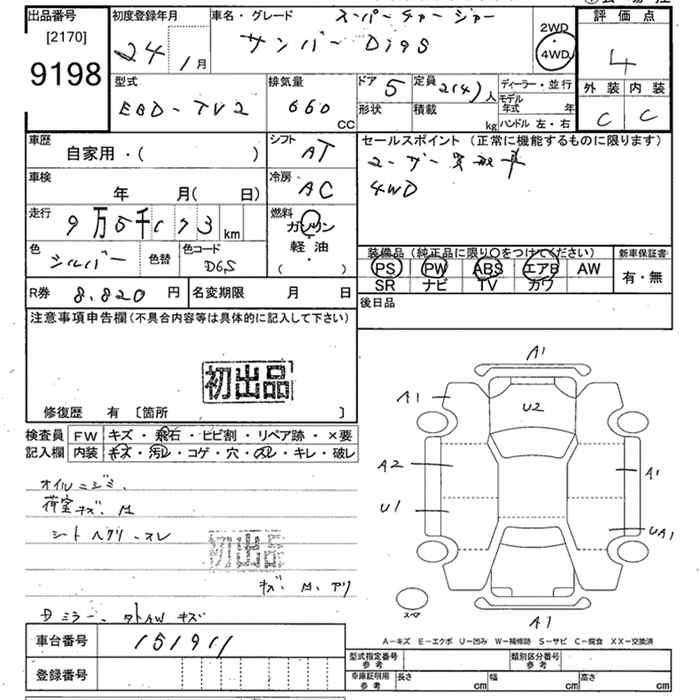 SUBARU SAMBAR DIAS - лот 9198