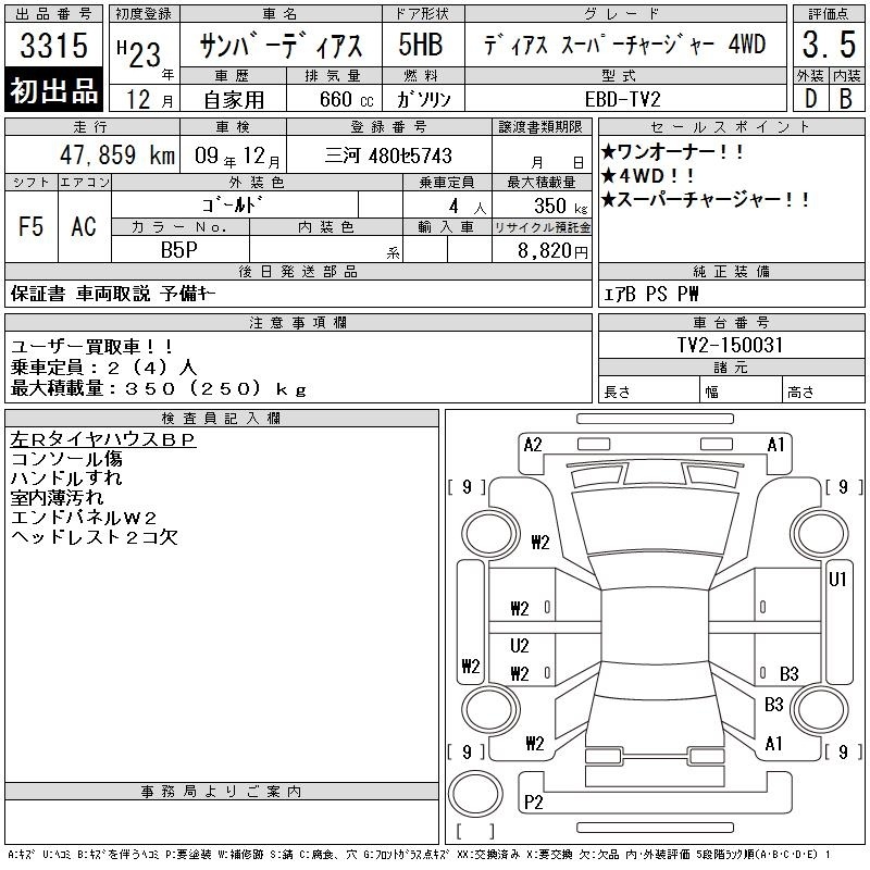 SUBARU SAMBAR DIAS - лот 3315