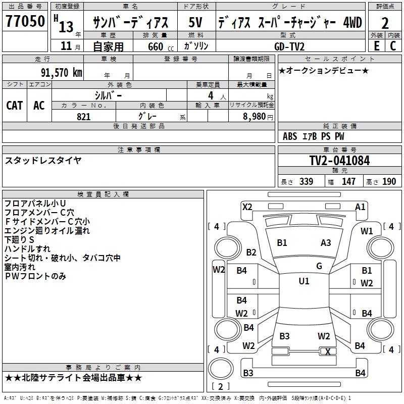 SUBARU SAMBAR DIAS - лот 77050