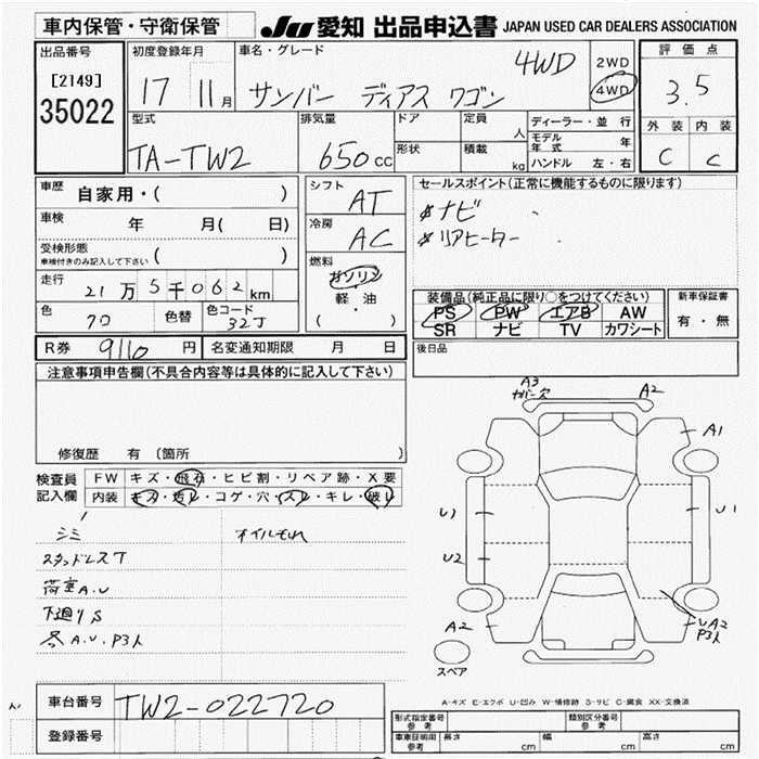 SUBARU SAMBAR DIAS - лот 35022