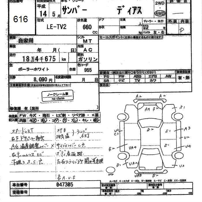 SUBARU SAMBAR DIAS - лот 616