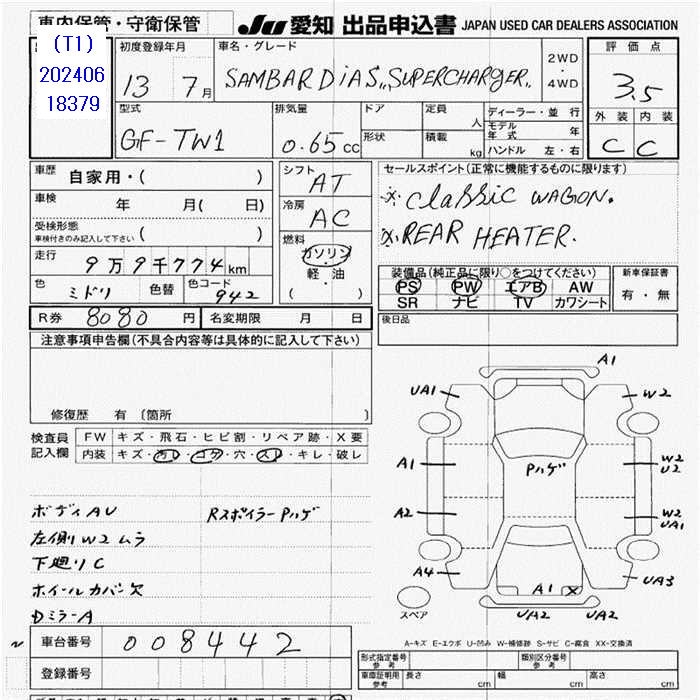 SUBARU SAMBAR DIAS - лот 39462