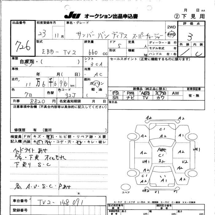 SUBARU SAMBAR DIAS - лот 726