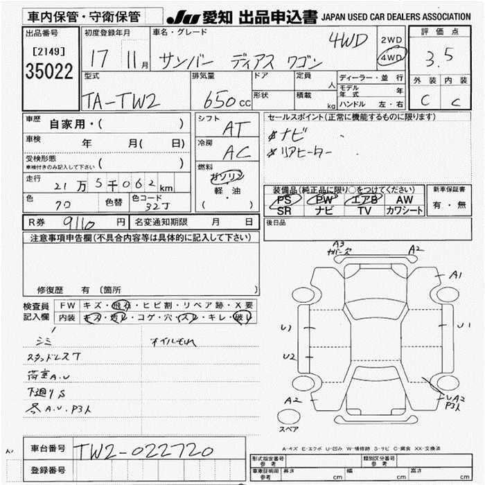 SUBARU SAMBAR DIAS - лот 35022