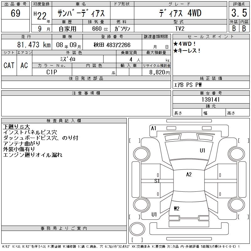 SUBARU SAMBAR DIAS - лот 69