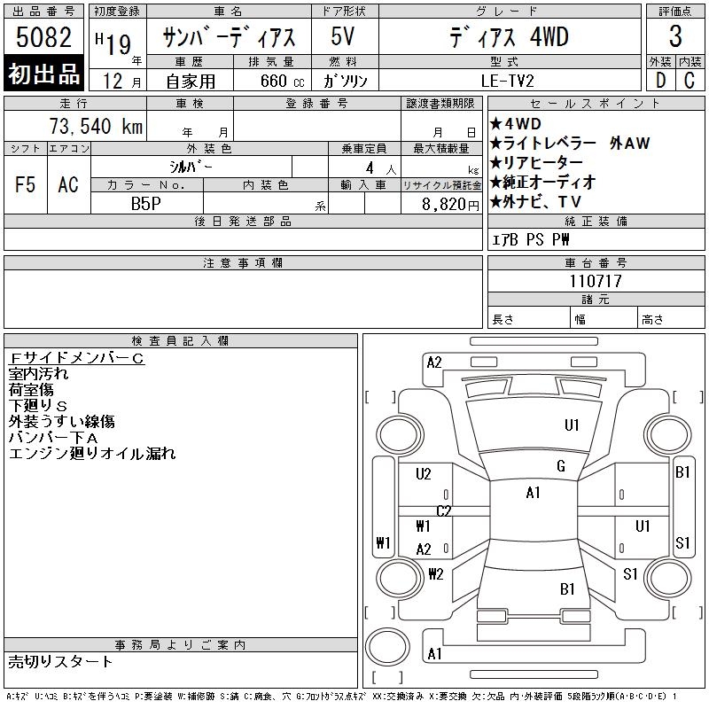 SUBARU SAMBAR DIAS - лот 5082