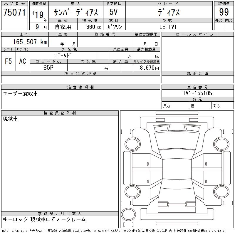 SUBARU SAMBAR DIAS - лот 75071