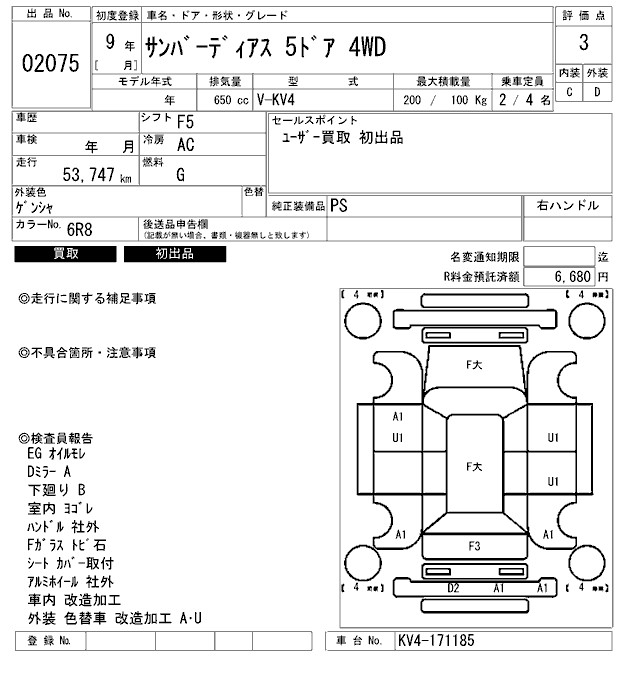 SUBARU SAMBAR DIAS - лот 2075