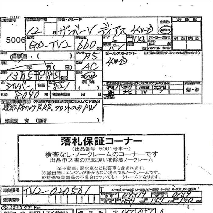 SUBARU SAMBAR DIAS - лот 5006