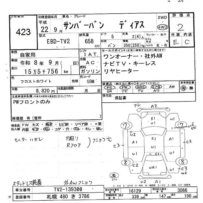 SUBARU SAMBAR DIAS - лот 423