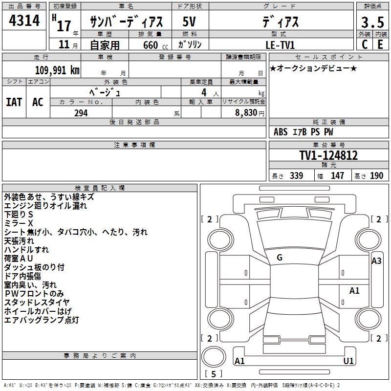 SUBARU SAMBAR DIAS - лот 4314