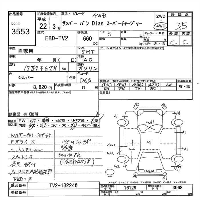 SUBARU SAMBAR DIAS - лот 3553