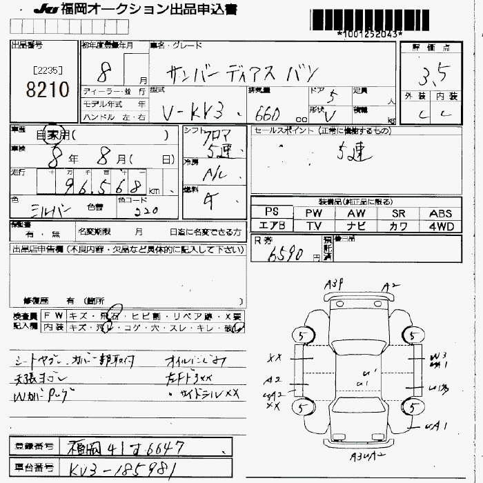 SUBARU SAMBAR DIAS - лот 8210
