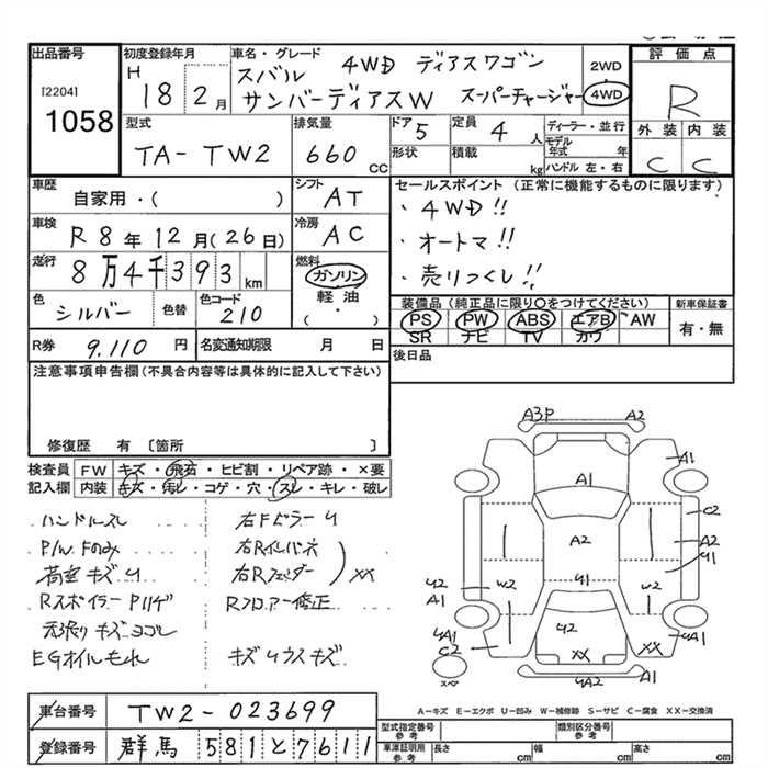 SUBARU SAMBAR DIAS - лот 1058