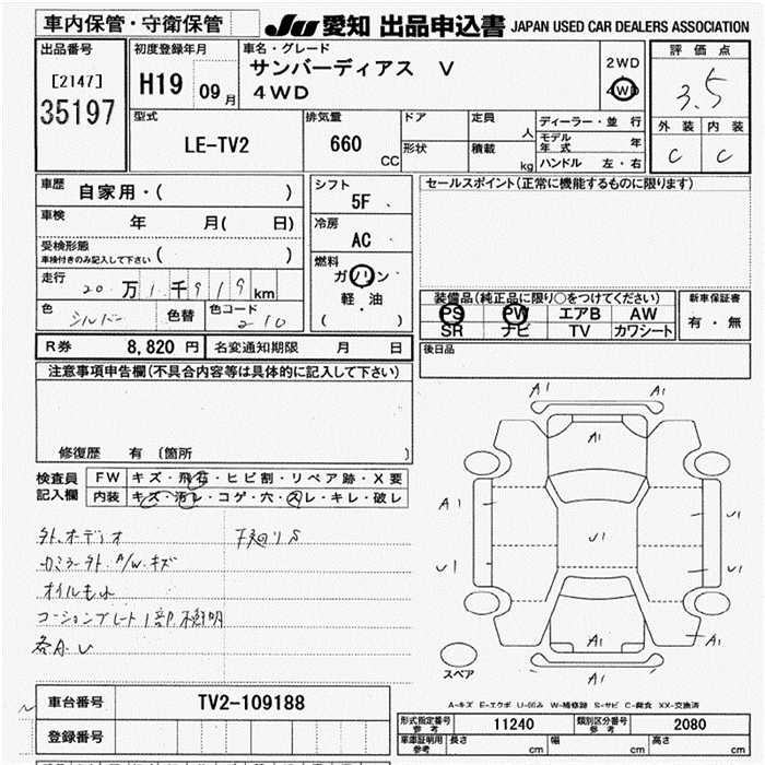 SUBARU SAMBAR DIAS - лот 35197