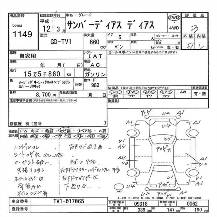 SUBARU SAMBAR DIAS - лот 1149