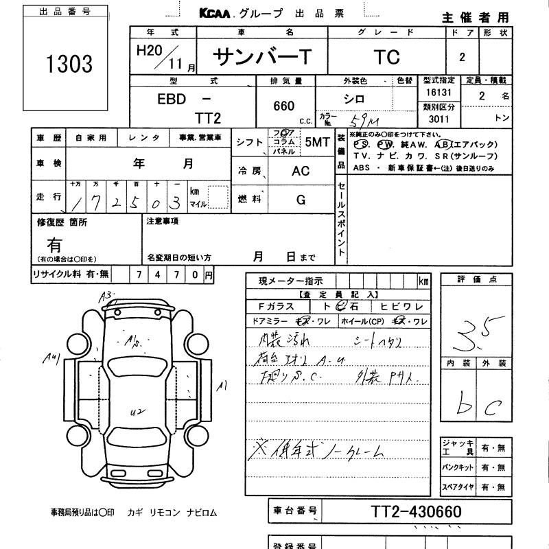 SUBARU SAMBAR TRUCK - лот 1303