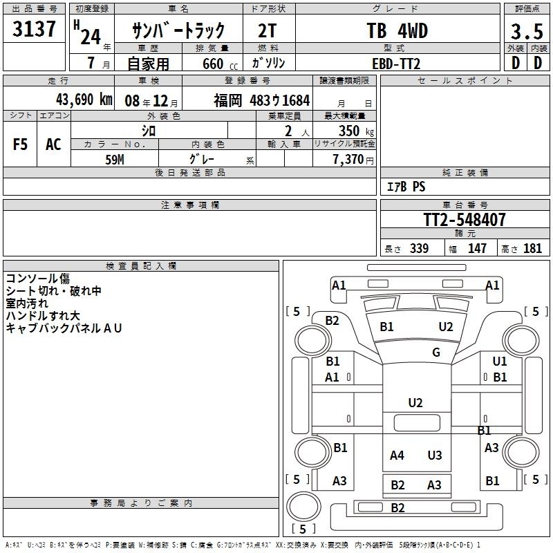 SUBARU SAMBAR TRUCK - лот 3137