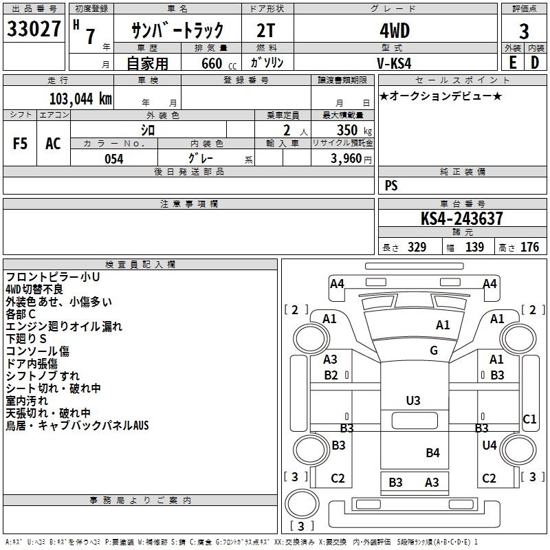SUBARU SAMBAR TRUCK - лот 33027
