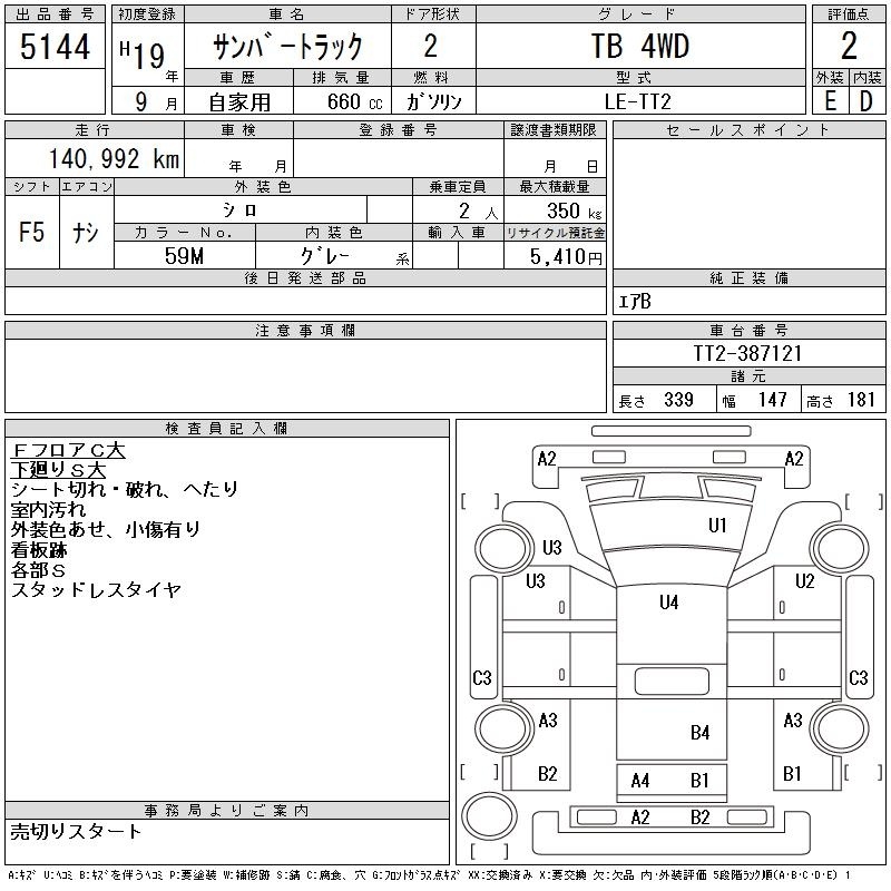 SUBARU SAMBAR TRUCK - лот 5144
