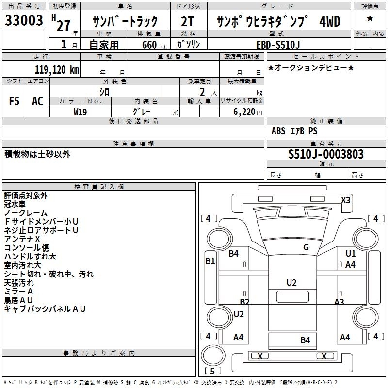 SUBARU SAMBAR TRUCK - лот 33003