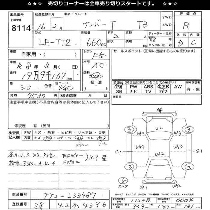 SUBARU SAMBAR TRUCK - лот 8114