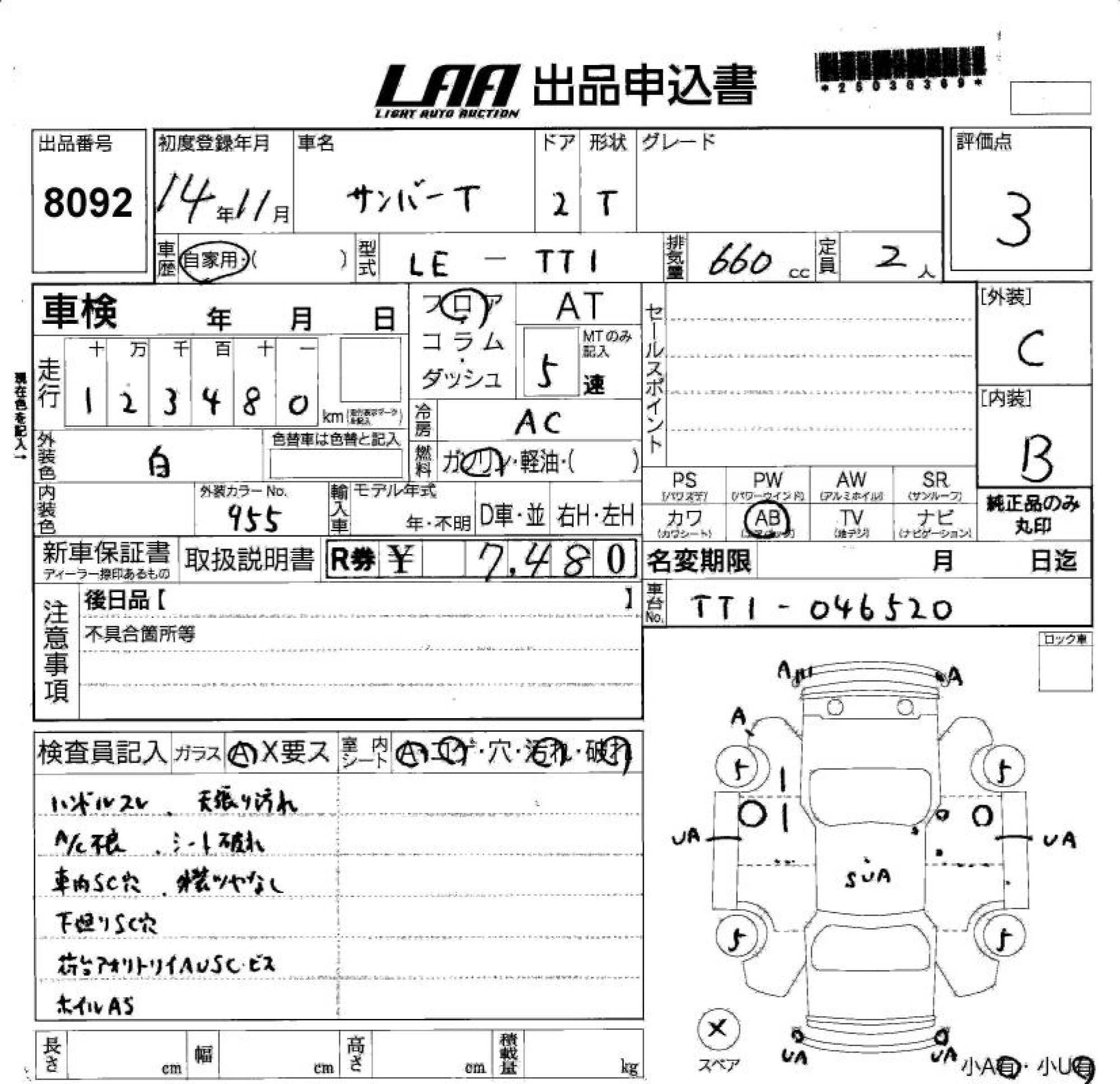 SUBARU SAMBAR TRUCK - лот 8092