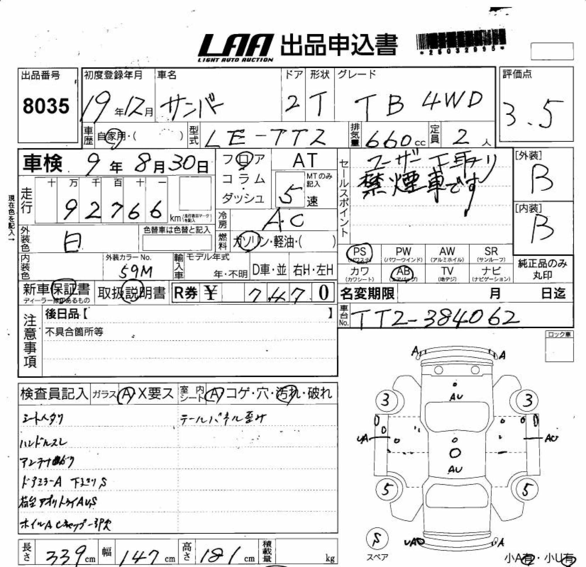SUBARU SAMBAR TRUCK - лот 8035