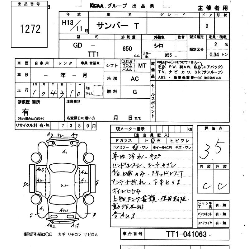 SUBARU SAMBAR TRUCK - лот 1272
