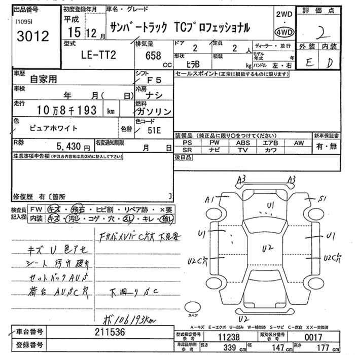 SUBARU SAMBAR TRUCK - лот 3012