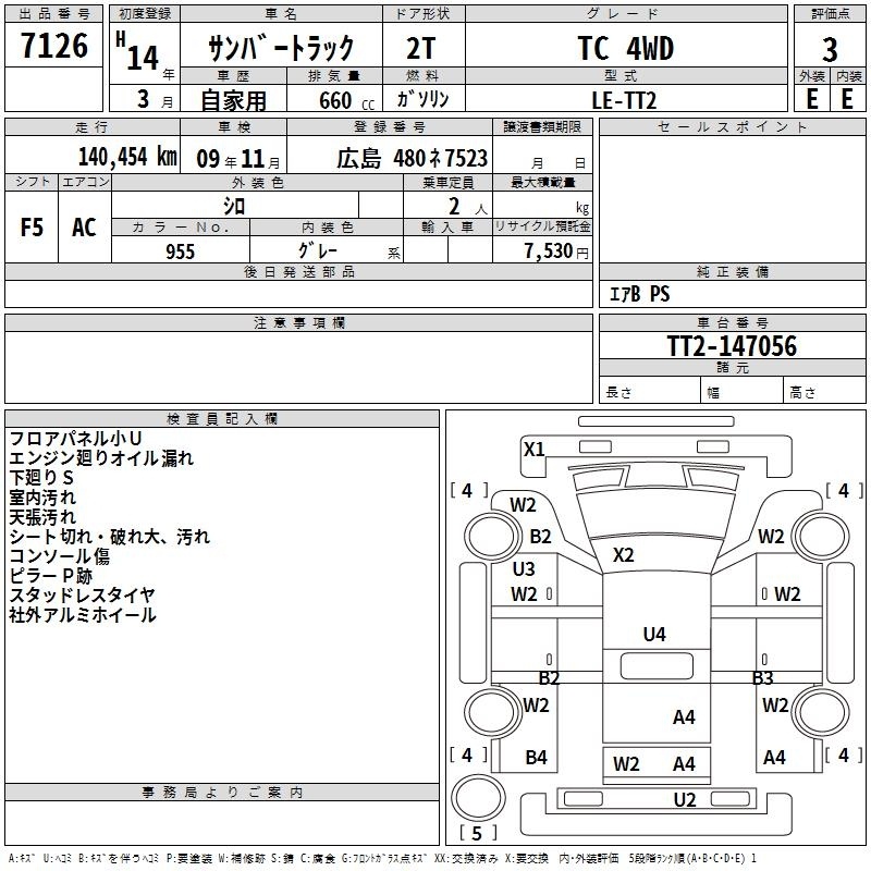 SUBARU SAMBAR TRUCK - лот 7126