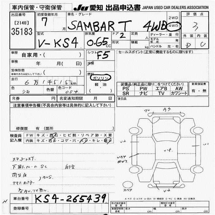SUBARU SAMBAR TRUCK - лот 35183