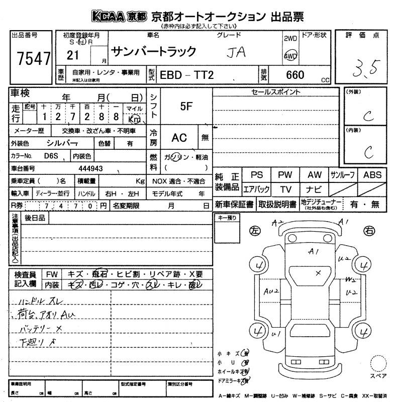 SUBARU SAMBAR TRUCK - лот 7547
