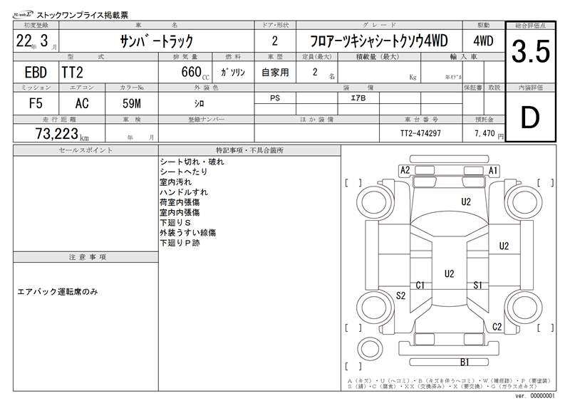 SUBARU SAMBAR TRUCK, 2012