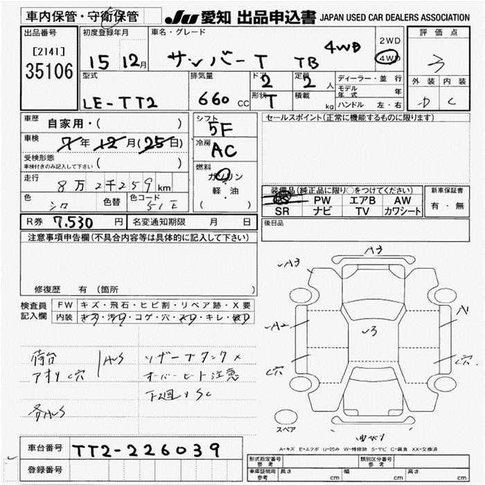 SUBARU SAMBAR TRUCK - лот 35106