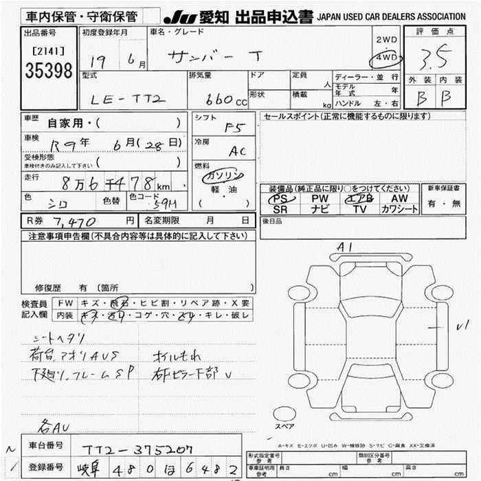 SUBARU SAMBAR TRUCK - лот 35398