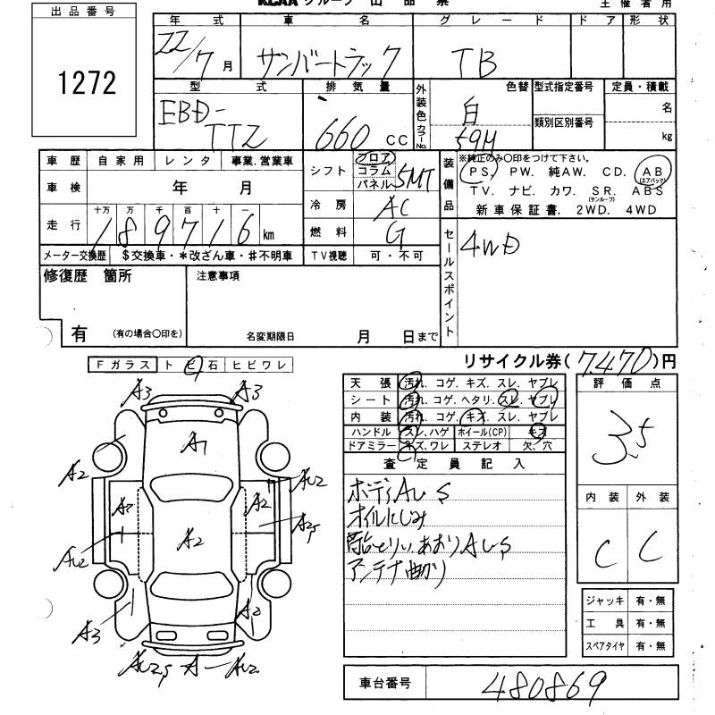 SUBARU SAMBAR TRUCK - лот 1272