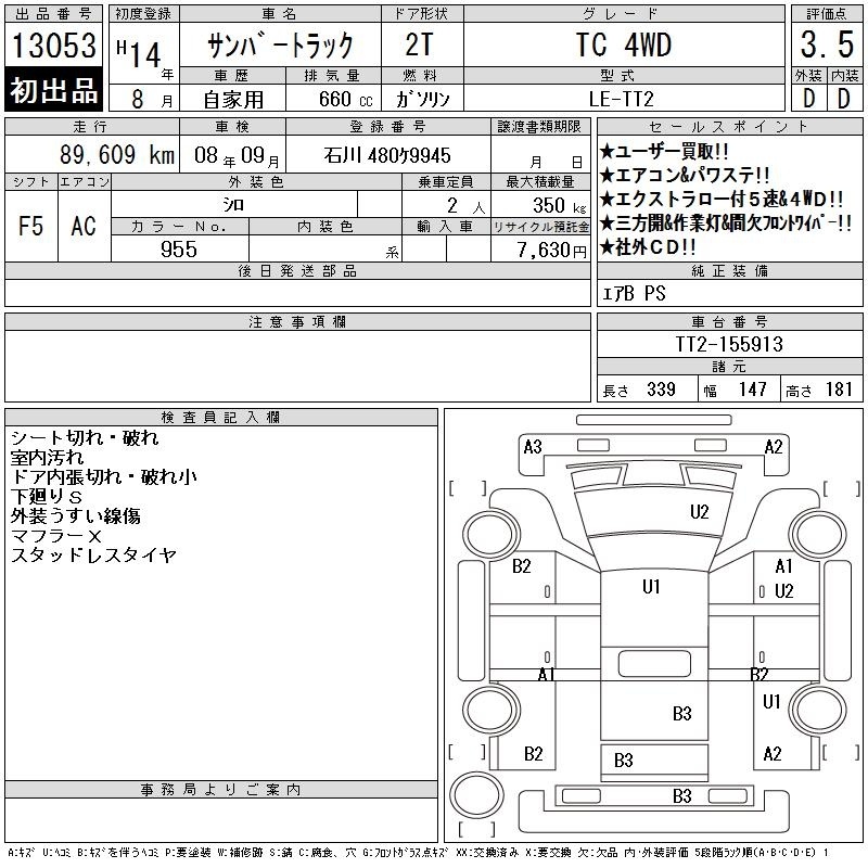 SUBARU SAMBAR TRUCK - лот 13053