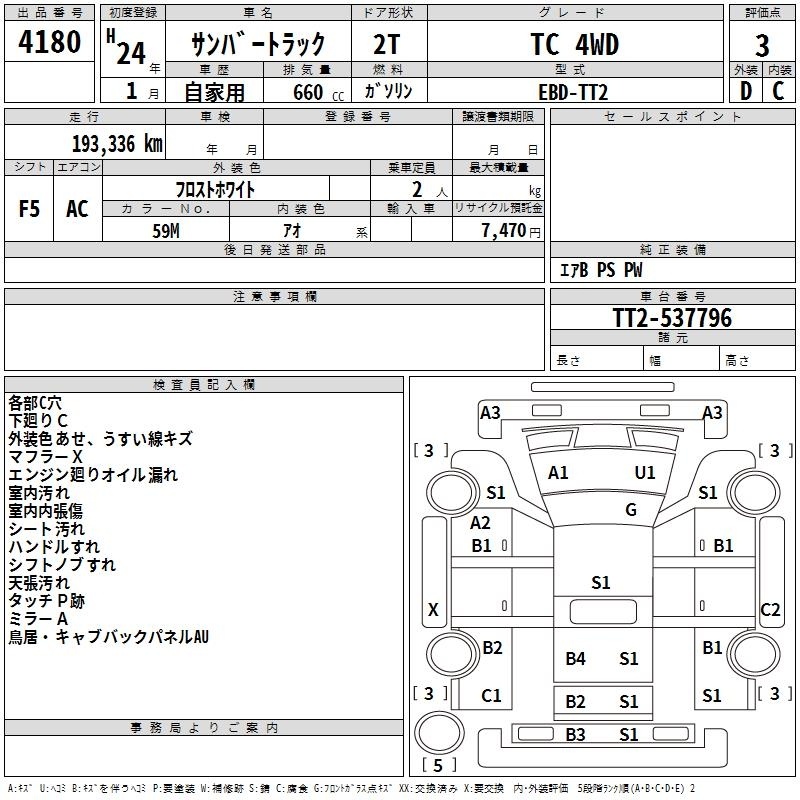 SUBARU SAMBAR TRUCK - лот 4180